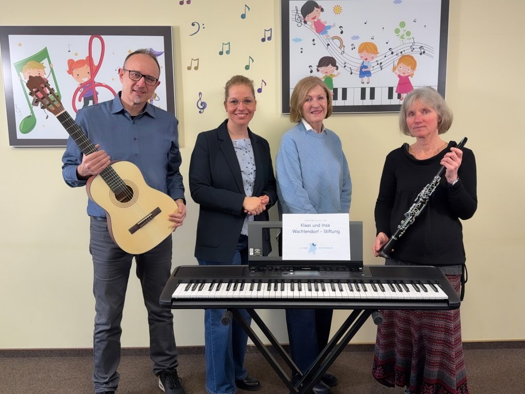 Dank der Förderung der Klaas und Insa Wachtendorf-Stiftung kann die Musikschule Friesland-Wittmund ihren Instrumentenbestand erweitern. Ein neues E-Piano, eine kindgerechte Klarinette und eine Linkshänder-Gitarre stärken das Angebot für junge Nachwuchsmusiker. Übergeben wurden die Instrumente von Insa Wachtendorf und Meike Timmermann an Torsten Seliger und Angela Dohmen von der Musikschule. Die Stiftung setzt sich für Projekte zugunsten von Kindern und Jugendlichen in der Region ein.